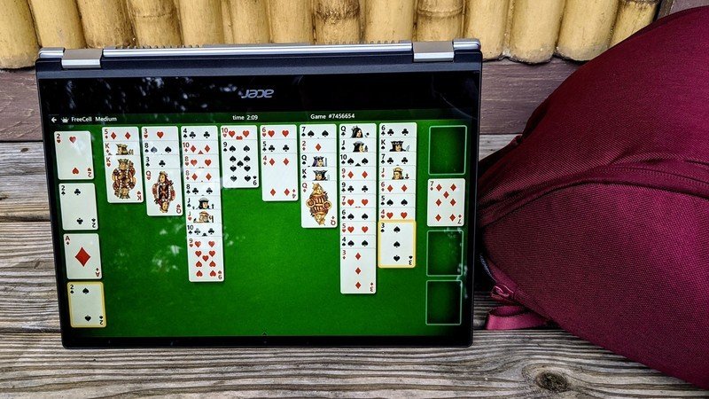Speaking of long flights, while the Acer Chromebook 514 probably won't last you a full 12 hours, I've been getting 7-9 hours per charge in my use the last few weeks. Screen brightness always plays a factor there, but I kept that between 30-40% for most of my testing. Since my review model was a non-touch screen, the matte coating made it slightly easier to use this screen outdoors, but it's still the basic 250 nits brightness, so you'll want to stick to the shade. If you need a Chromebook bright enough to use outdoors, you'll want the 450-nit Acer Chromebook Spin 713.
