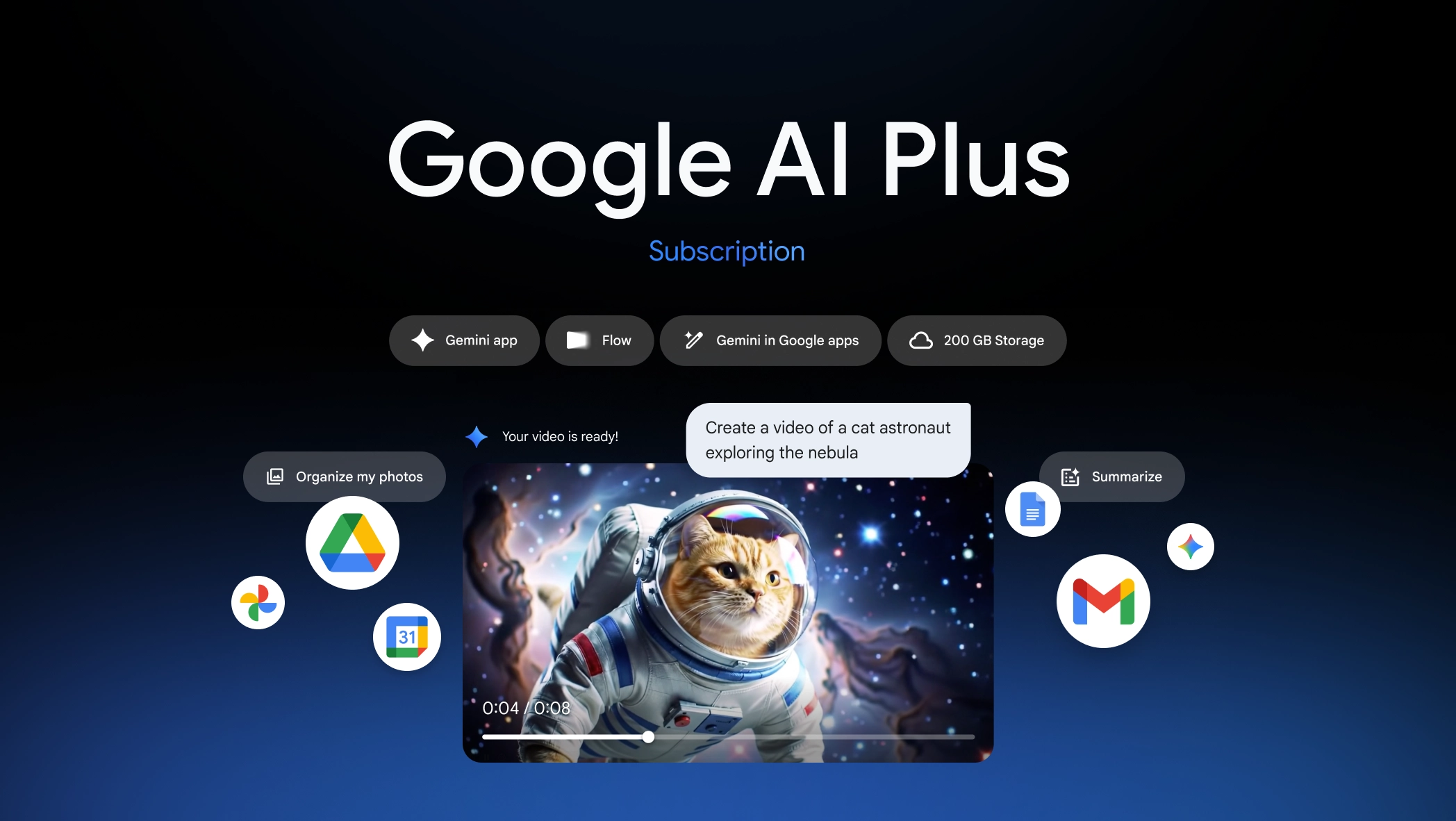 Other improvements include double the amount of monthly AI credits (200), wider access to Google's AI filmmaking tool Flow, and premium NotebookLM features like Audio Overviews. Google AI Plus grants access to Gemini in Workspace apps and Gemini in Chrome, the latter of which is debuting in early access as a personal assistant for browsing.