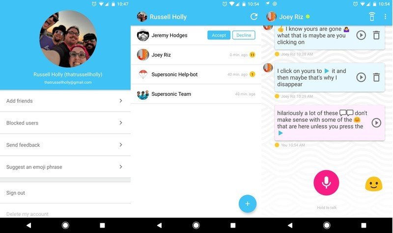It's called Supersonic, and it's not technically a Google app. In its current form, it'll never be a part of the core Google experience. The app itself is under the publishing name Area 120, because it's the creation of Google employees inside of an internal incubator program for building new and exciting apps. At its core, Supersonic is a walkie-talkie style voice chat app for your friends. You hold down the mic, speak, and the message is transcribed to text with a voice recording attached.