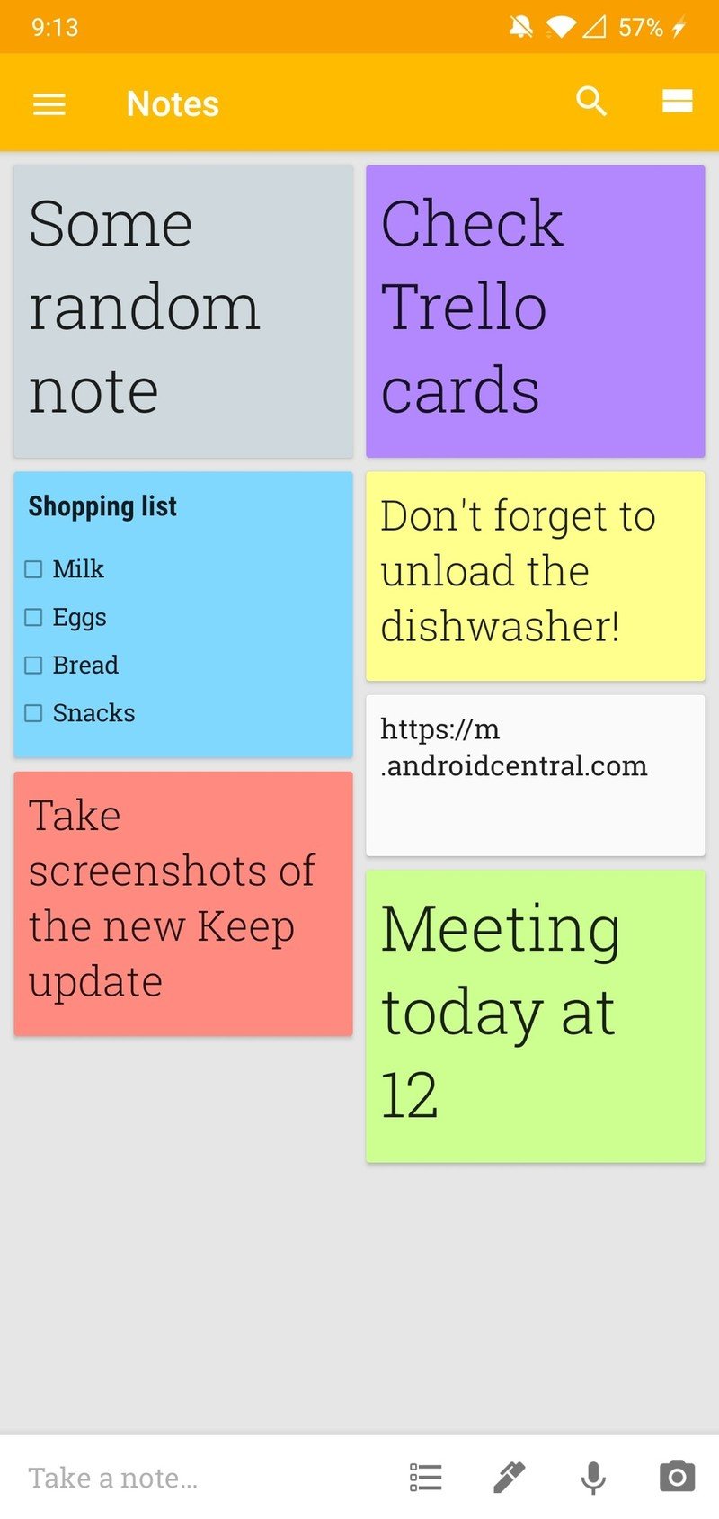The core functionality remains mostly the same, with controls at the bottom for creating a new note and a hamburger menu to the left that allows you to see your reminders, custom labels, and more. If you want to switch to a different Google account, you'll now need to tap your profile icon at the top right of the screen from the home page.
