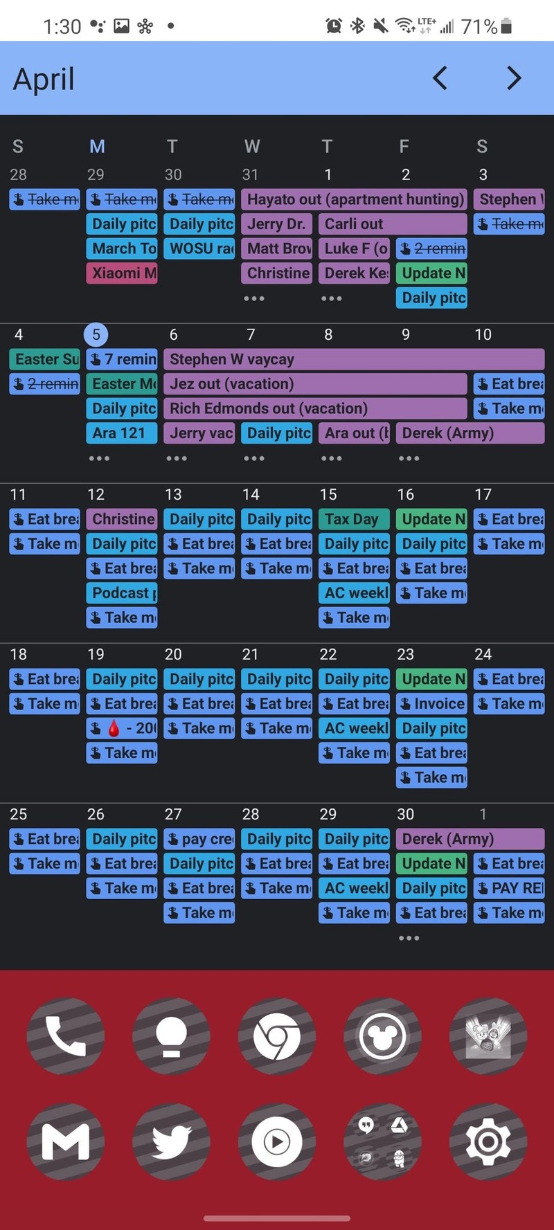 The schedule view widget is at least legible. It resizes to fill however much space you give it, and you can see all scheduled events, including all-day events. Both widgets need a visual update with rounded corners and a more glance-able form factor, but I doubt we'll see system-theming colors come here given how colorful Calendar already is.