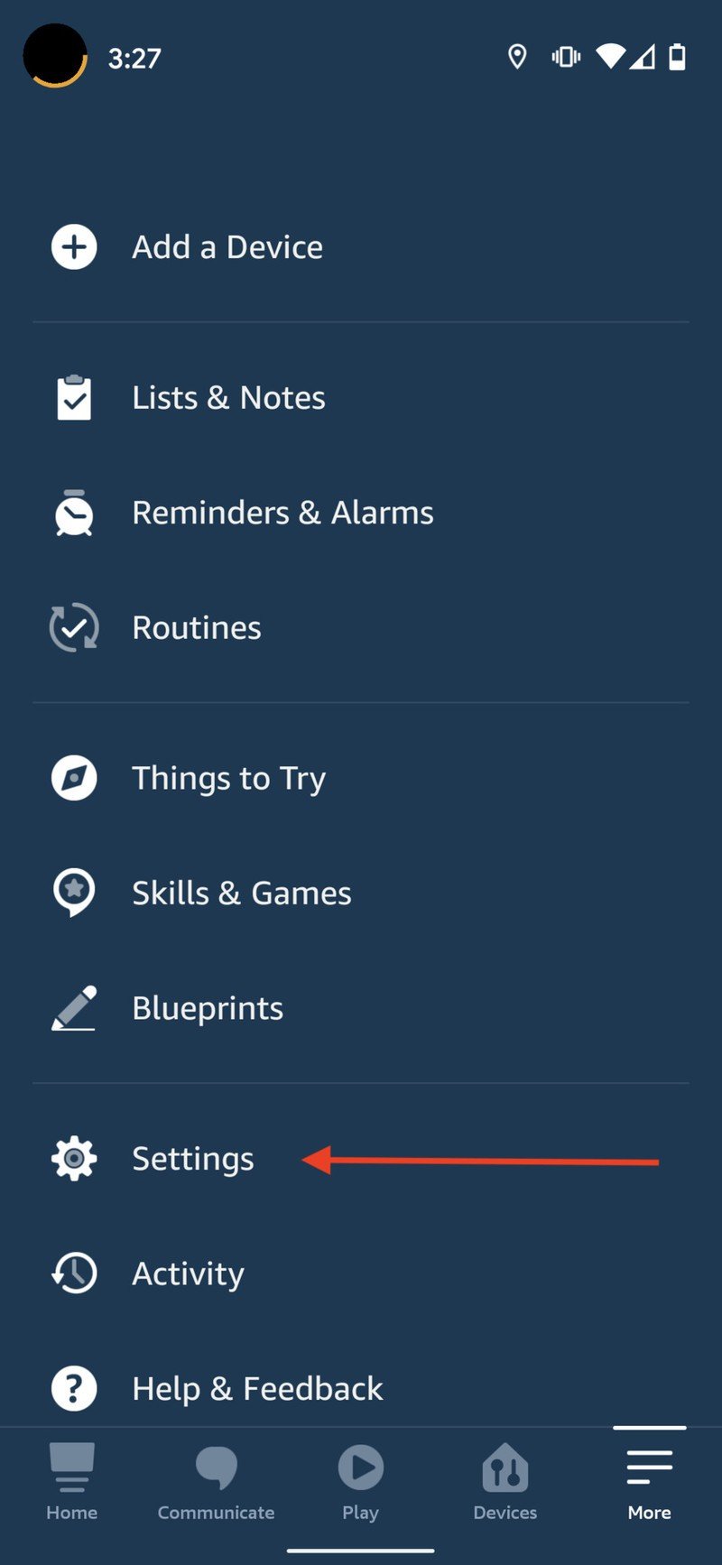 - Ensure that you are logged into your Amazon account in the Alexa app, open the app, and tap on the More tab at the bottom right of the screen.