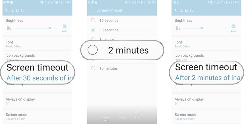 - Tap to select the length of inactivity you want your screen to timeout at. It's set at 30 seconds by default.