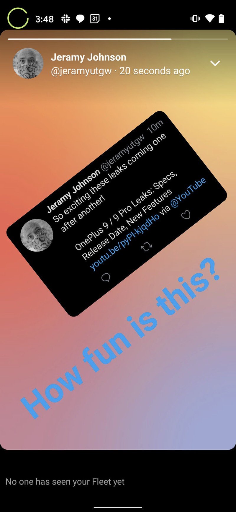 Pretty easy, right? Now your Tweet is live in your Fleets. Best of all, you can Fleet your Tweets, or create new fleets, directly from your favorite Android phone! Now go Fleet responsibly!