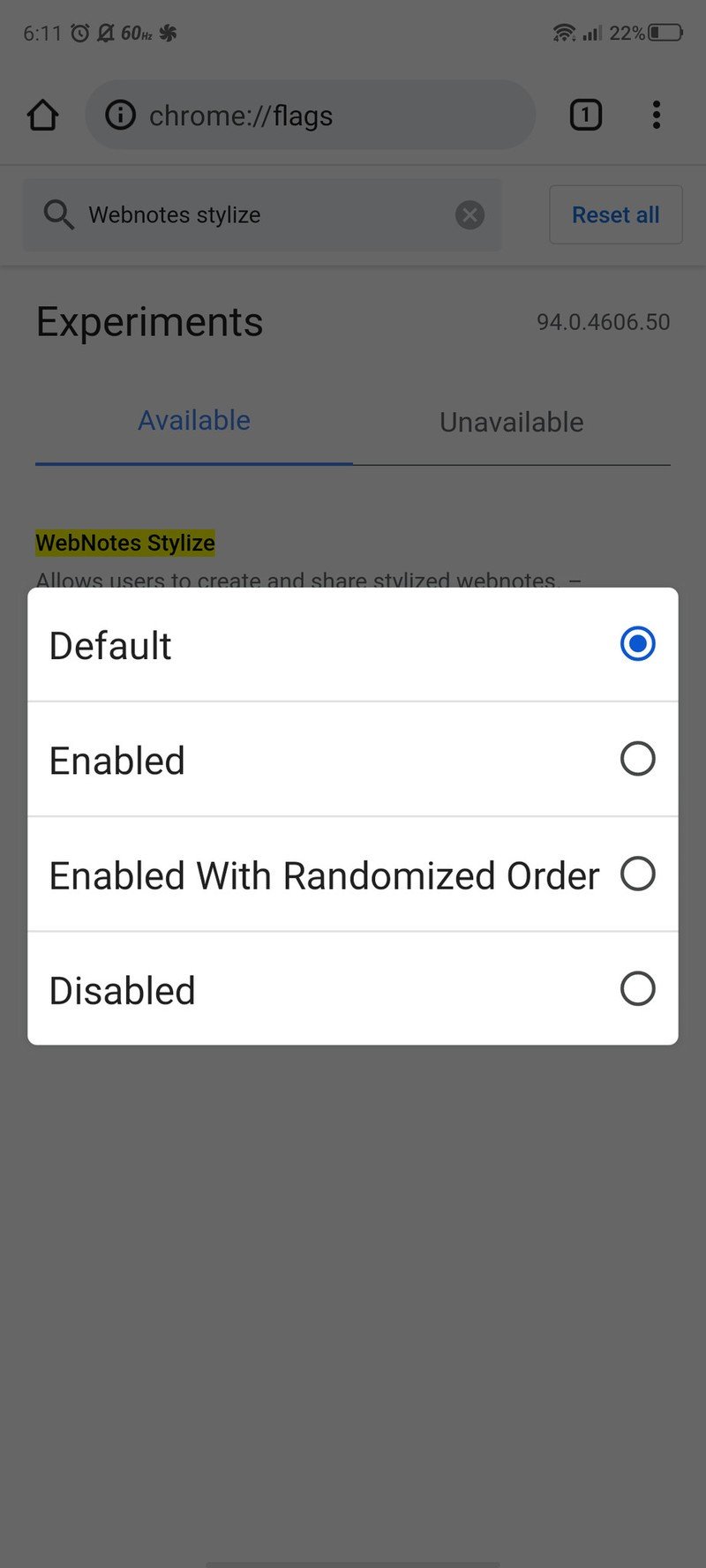 - Change the WebNotes Stylize flag settings to Enabled.Source: Namerah Saud Fatmi / Android Central