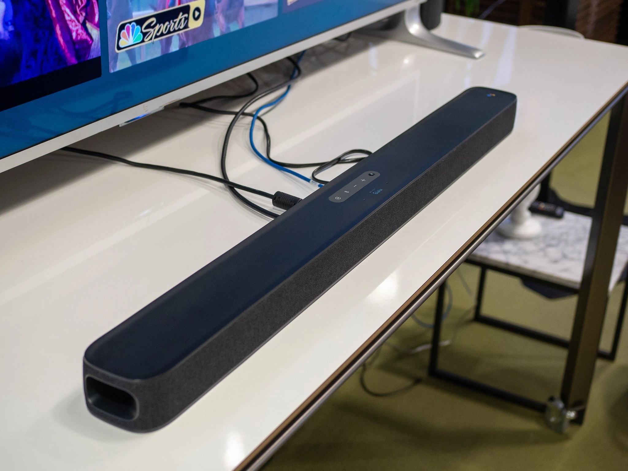 When your TV isn't on to provide video, the JBL Link Bar continues to work as a standalone Google Assistant speaker as well with "Hey Google" always-listening capabilities and audio responses without firing up the TV. And with its rather large size and multiple speakers, it can provide an experience more akin to the Google Home Max than a standard Home. Voice control can come through a microphone on the Link Bar's remote, or entirely hands-free using far-field array microphones just like a Google Home offers. A set of LEDs on the front of the soundbar give you a visual cue that it's listening, and a hardware mute switch on top clearly shows you when it isn't.
