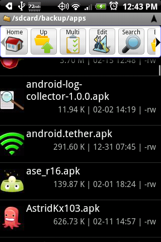 Fire up your file browser, and head into the folder where you saved your apps. Find the app you want to install, and give it a click. Depending on your file browser, you may be given a choice what to do. Choose to use the installer, and follow the prompts to install the application. Hit the home button, and you'll see the app is now in your drawer just like any application from the official market. If you're using Astro, have a look at the pics below. Other File Browsers will be very similar.