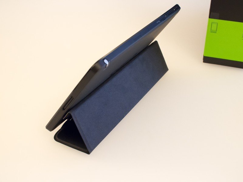 What NVIDIA was able to do with the Tablet Cover is a great example of what first-party accessories offer, as it makes clever use of magnets to provide a great experience. There are embedded magnets in the back of the Shield Tablet that link up with the Tablet Cover at each of the three angles, as well as with the entire cover when it's flipped back and you're using the tablet. That means no more awkward dangling cover when you're trying to read a book, and no more tipped-over tablet when someone bumps the table it's sitting on.