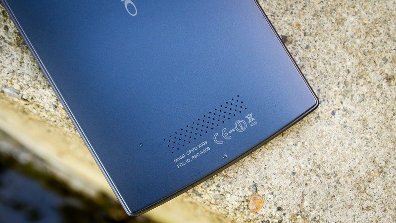 The back plate of the Find 5 is made of the same material as the sides, but is actually a separate piece from it. This leaves a noticeable jump between the sides and the back, one that OPPO clearly isn't trying to hide as it adds to the overall design of the device. The back plate is non-removable, and is a pretty simple affair -- camera and LED flash pod up at the top in the center, OPPO branding in the middle and a drilled speaker grille at the bottom.