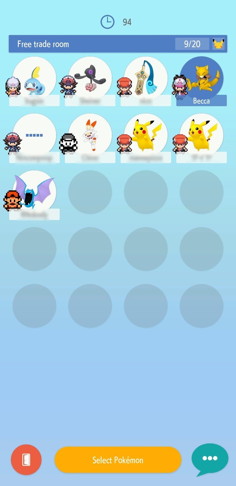 - Once others join the room and the timer has counted down, you can select a Pokémon you're willing to trade.