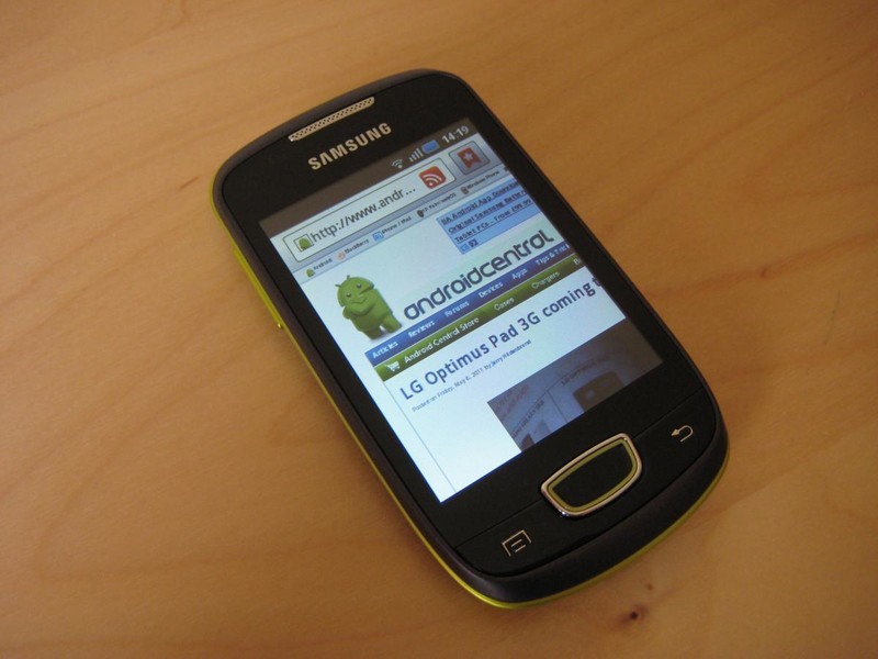 The Galaxy Mini comes in a small, light form factor that’s easily pocketable, and pretty good-looking for a budget smartphone. Our review unit featured a stylish lime-green trim, and although the device feels a little plasticky, we were generally pleased with the build quality. The Galaxy Mini sports a 3.2-inch capacitive LCD touchscreen, beneath which sit three buttons -- menu, back and home. There’s no dedicated search button, unfortunately, although the menu button can be held down to activate search functionality.