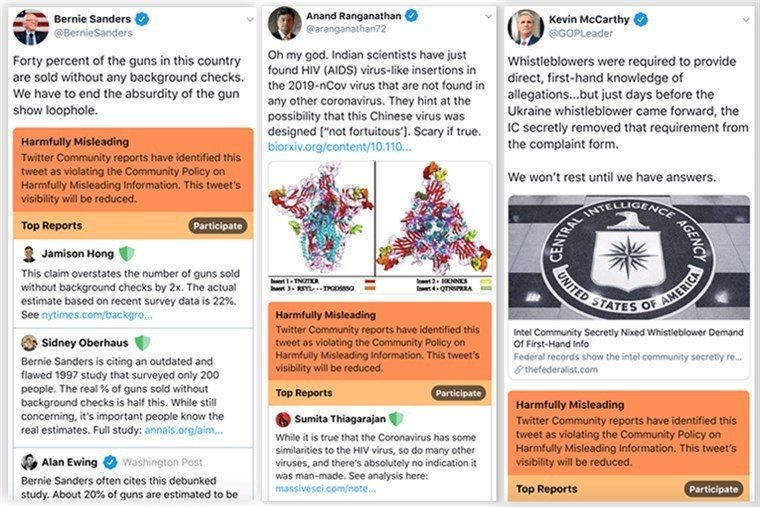 - One version would highlight tweets that are false or misleading with bright orange banners and point users to rebuttals from fact checkers.