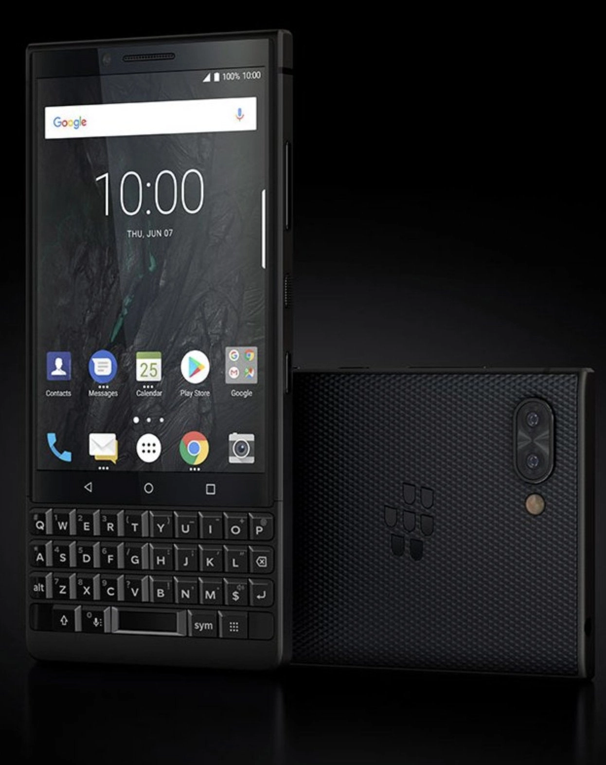 The front is home to a large touchscreen display and below that is a full-fledged physical keyboard. In between those are capacitive navigation buttons for making your way around Android, and the fingerprint sensor appears to reside in the spacebar once again.